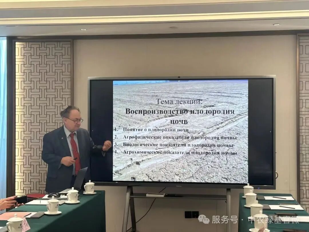 在紧随其后的技术交流环节,马兹洛夫院士首先发表了专题演讲。他聚焦自然科学领域,深入剖析了影响土壤肥力的关键因素,分享了其在提升地力、促进作物健康生长方面的最新研究成果与见解。